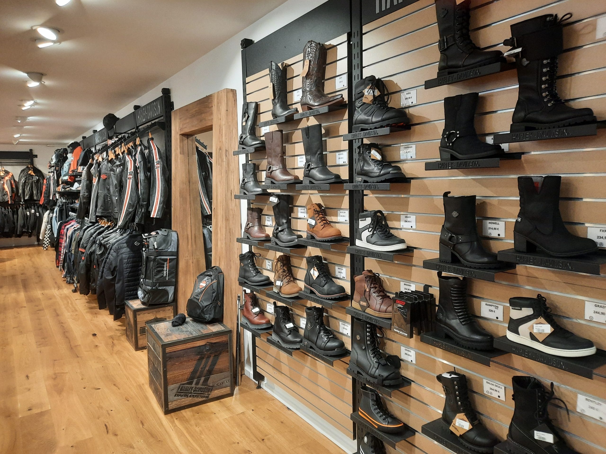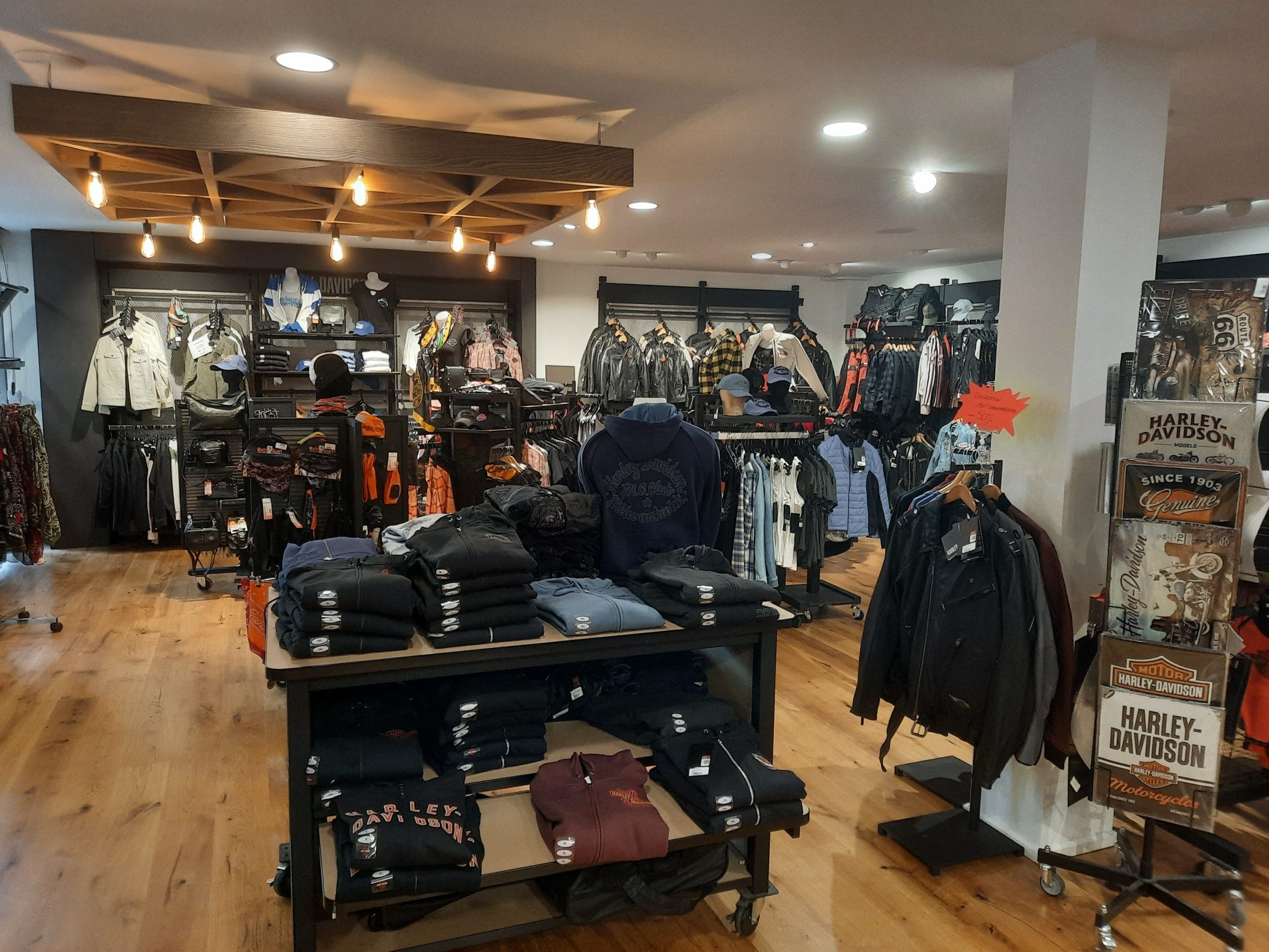 Que vous cherchiez à vous équiper ou simplement offrir un cadeau, les ambiances et choix multiples sauront retenir votre attention et émerveiller vos yeux. Du cuir aux casques, des chaussures aux chemises, des lunettes aux jeans, mais aussi des idées cadeaux en tout genre, mugs, services de table, horloge, BBQ’s, sans oublier bien sûr de formidables bijoux.